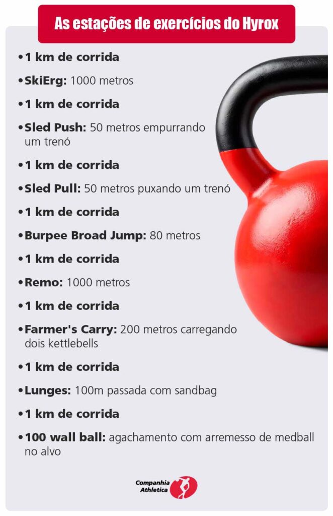Durante cada circuito, o participante alterna 1 km de corrida com uma nova estação de treino funcional, repetindo a sequência 8 vezes. O resultado é um treino dinâmico e desafiador, que exige resistência, força e coordenação em igual medida.